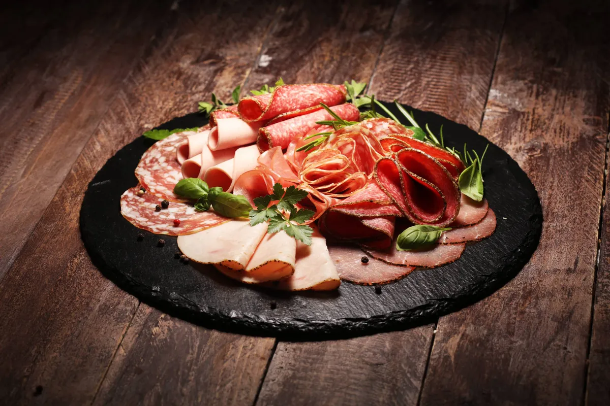 De rode zone: beter (bijna) schrappen In de gevarenzone zitten vooral salami, chorizo en coppa, bacon en spekblokjes, paté en vette terrines: heel zout, vet en zwaar bewerkt. Ook rauwe of gerookte hammen (Parma, Serrano, Bayonne) lijken onschuldig, maar bevatten vaak veel zout en nitriet en zijn daarom geen dagelijkse keuze. KWF adviseert bewerkt vlees zoals ham, worst en salami liever helemaal te vermijden.