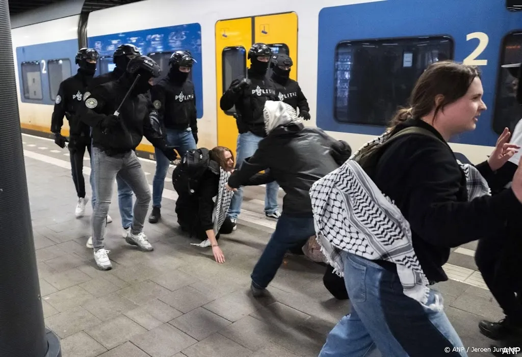 De actievoerders begonnen het protest bij het ministerie van Buitenlandse Zaken en gingen vervolgens naar het station, waar ze het spoor opliepen. Daardoor lag het treinverkeer zo'n 3,5 uur stil. De NS en ProRail meldden eerder al dat ze aangifte doen tegen de demonstranten.