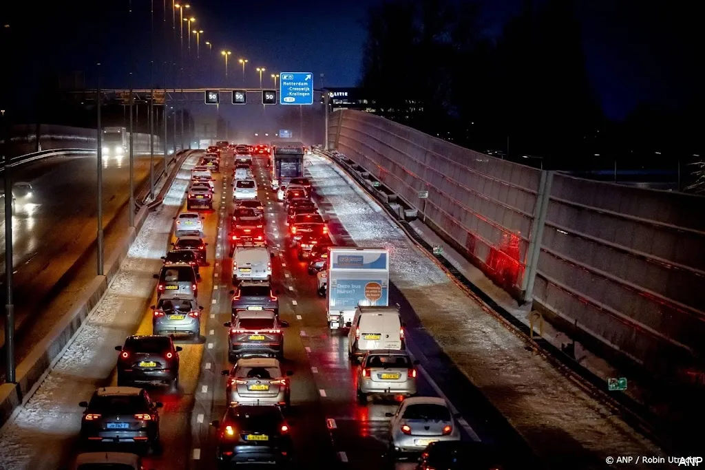 UTRECHT (ANP) - Door het winterse weer staat er maandagochtend zo'n 690 kilometer file. Volgens Rijkswaterstaat is het de drukste ochtendspits sinds december 2024. "Ter vergelijking, in 2025 zagen we geen ochtendspits drukker dan 650 kilometer."