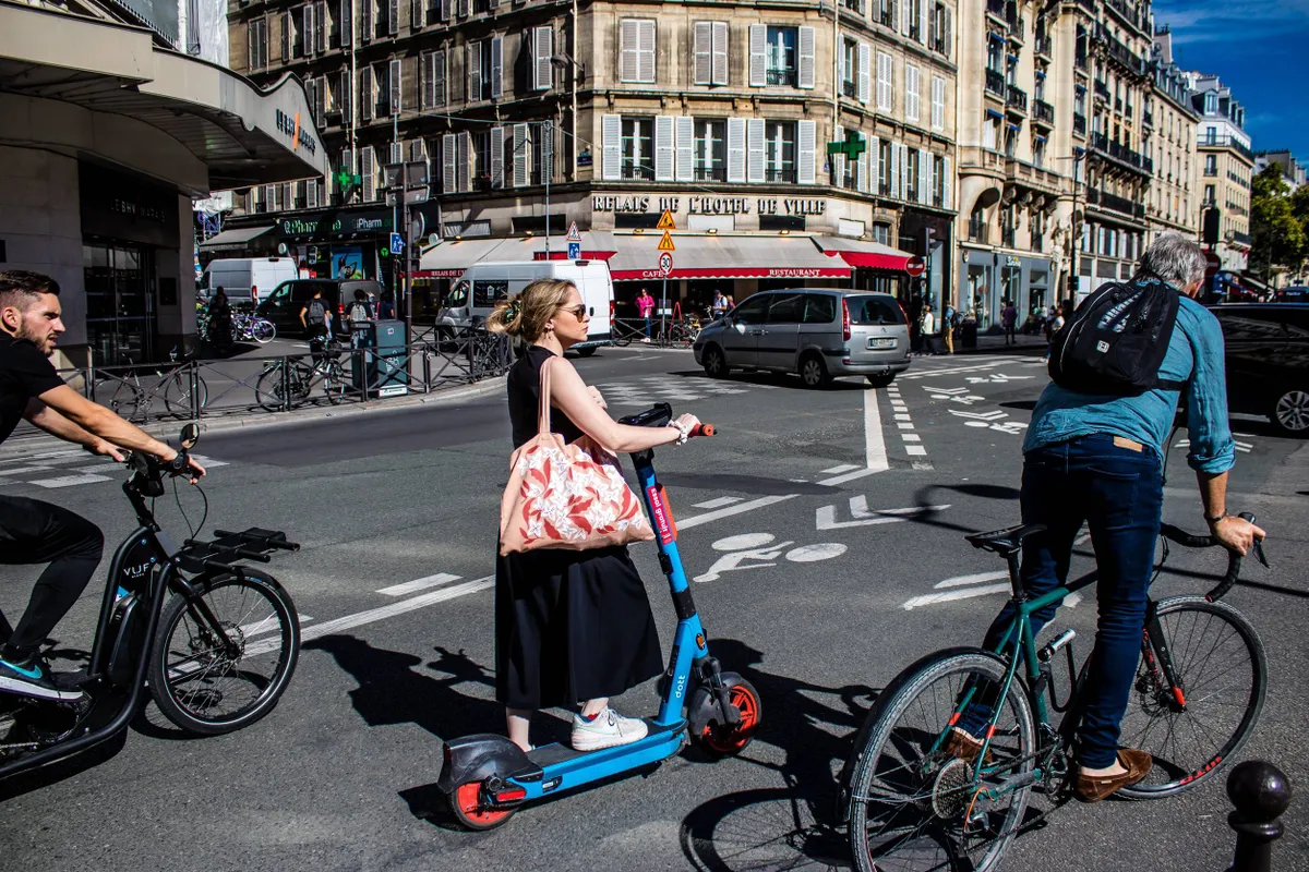 Parijs gold lang als hét rijk van de toeterende auto, eeuwig verstopte boulevards en smog over de Seine. Nu is dezelfde stad een onverwacht rolmodel voor de post-autostad. Onder burgemeester Anne Hidalgo daalde het autoverkeer in Parijs in twintig jaar met meer dan de helft, terwijl het netwerk van fietspaden ongeveer zes keer zo groot werd. Inmiddels worden er dagelijks meer ritten per fiets dan per auto gemaakt binnen de stad.[