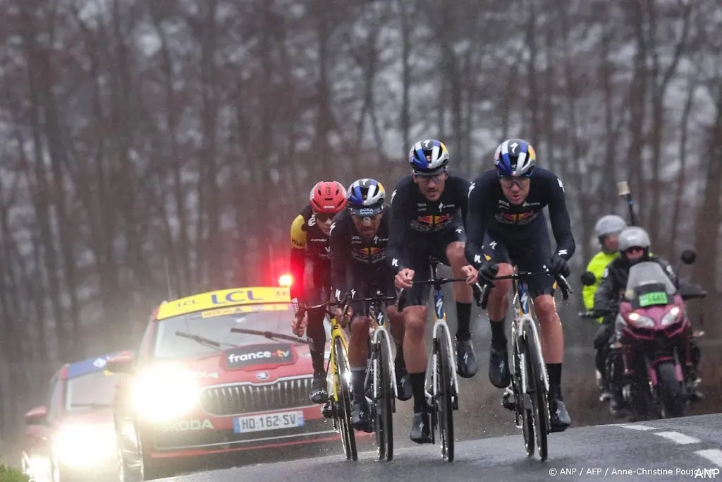 UCHON (ANP) - Jonas Vingegaard heeft de macht gegrepen in Parijs-Nice. In een chaotische etappe in regenachtige omstandigheden kwam de tweevoudig Tourwinnaar alleen boven op een klim van eerste categorie. De Nederlander Tim van Dijke werd derde op 45 seconden van de winnaar, vier seconden achter zijn ploeggenoot Daniel Martínez. Mick van Dijke, de tweelingbroer van Tim, werd vierde. Vingegaard neemt de leiding in het algemeen klassement over.
