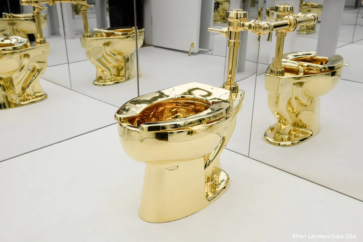 Cattelan maakte de gouden pot als satire op de buitensporige rijkdom in de wereld. "Wat je ook eet, een lunch van 200 dollar of een hotdog van 2 dollar, de resultaten zijn hetzelfde, wat de wc betreft", zei de kunstenaar er ooit over.